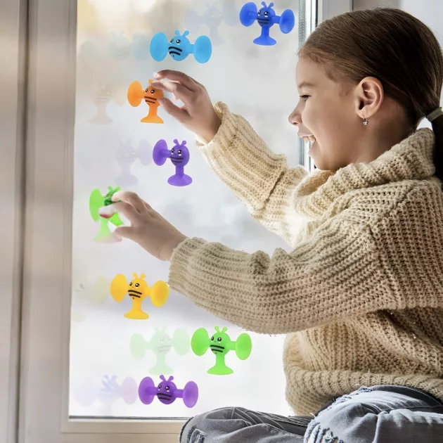 My kids love popping bees! They stick well on windows, making each playtime super exciting. Fits perfectly in small hands. Handy eggshell keeps the toys all together!