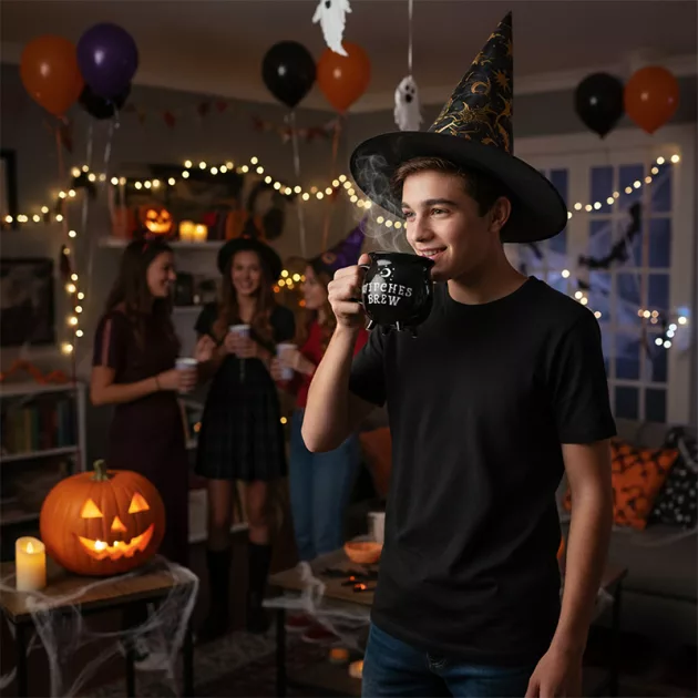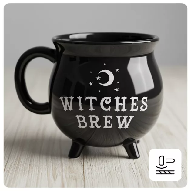 My niece fills her cauldron mug with jellybeans. It’s really cute for snacks, and the black color hides stains.