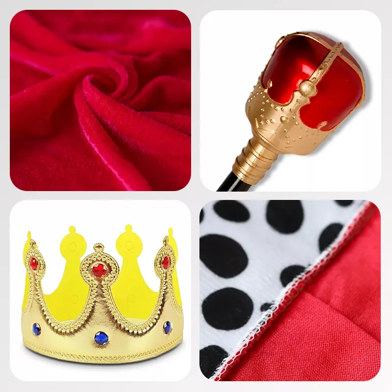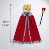 Red King Robe Velvet Cape and Golden Crown Halloween Party Costume for Kids