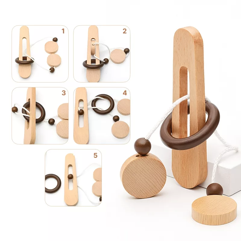 My cousin learned patience thanks to this wood puzzle. He takes his time and loves showing us how he solved it without any help.